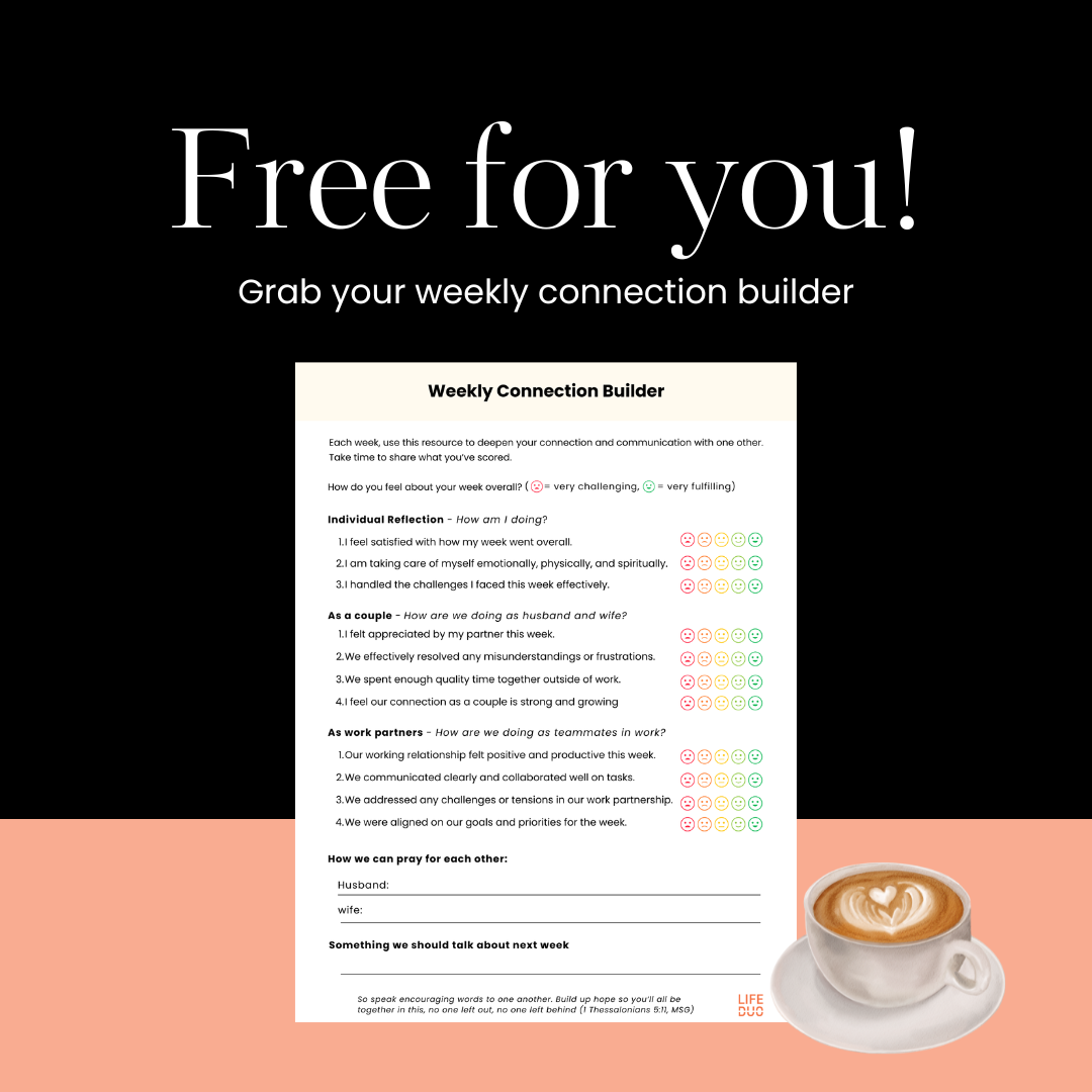 Hi, we’re Ivan & Ashley—Life Duo founders and life coaches who help couples live out their calling, lead together with peace, and love working as a team. This guide was born out of our own journey—and we’d love to share it with you.